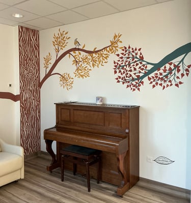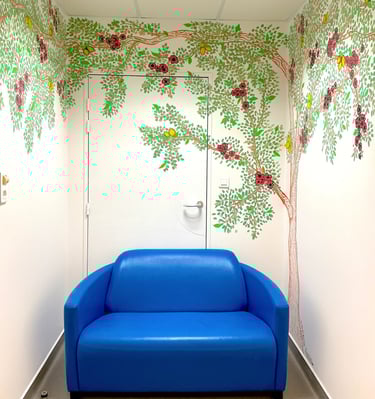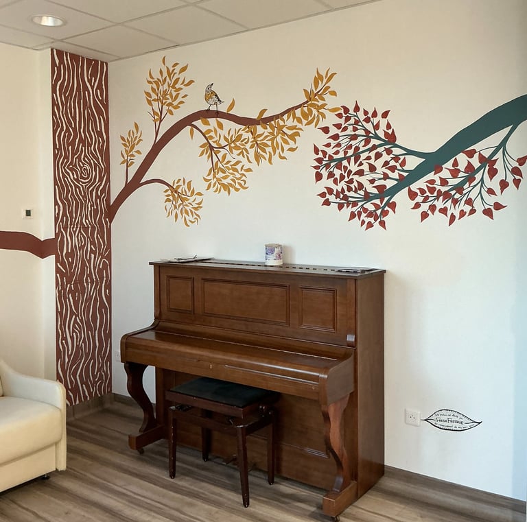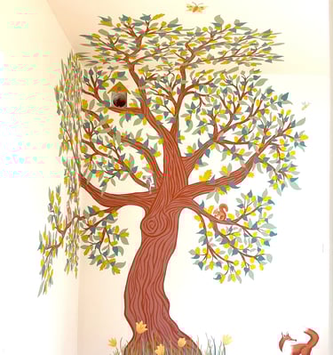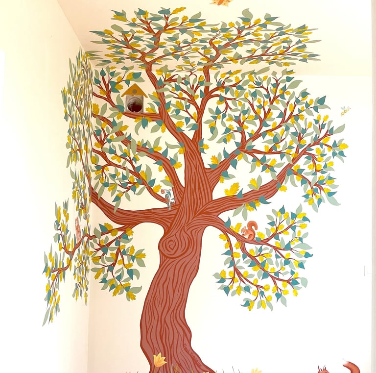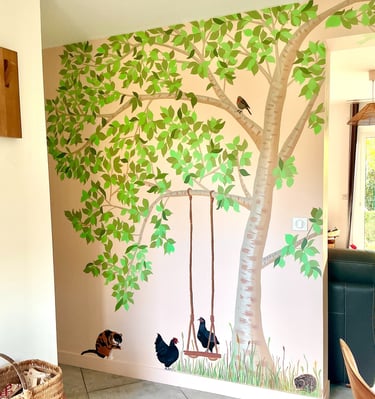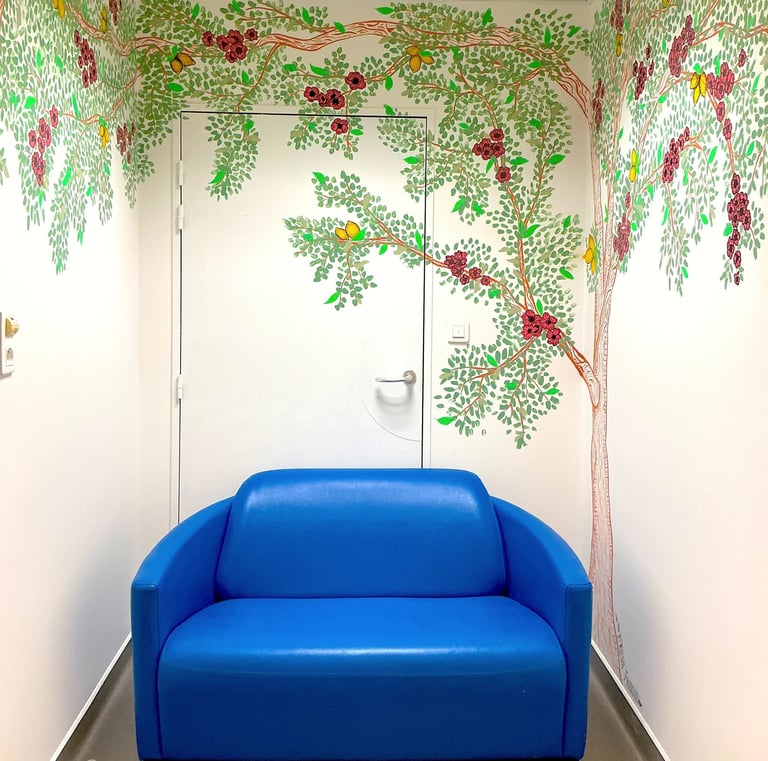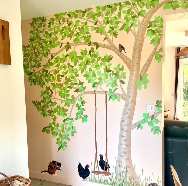 "Je serais ravie de vous rencontrer pour construire avec vous un projet de décoration personnalisée qui vous ressemble. Chambre, boutique, salon, restaurant, bureau, entreprise, école, bar, salle d'attente, cabinet... Je peins partout ! À très bientôt !"
